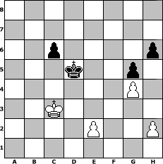 Partie-Notation im PGN-Format [Event "Schach f"] [Site "www.mySchach.de"] [Date "2008.08.25"] [Round "2"] [White "rakl"] [Black "RashimIbenRohal"] [ECO "C10"] [WhitemyELO "1754"] [BlackmyELO "1529"] [Result "0-1"] [TimeControl "10/2592000"] [WhiteDays "28"] [BlackDays "30"] [MySchachNr "47454"] 1. e4 e6 2. d4 d5 3. Nc3 dxe4 4. Nxe4 Nd7 5. Nf3 Ngf6 6. Bd3 Nxe4 7. Bxe4 Nf6 8. Bg5 Be7 9. Qd3 h6 10. Bh4 O-O 11. O-O-O Nxe4 12. Bxe7 Nxf2 13. Bxd8 Nxd3+ 14. Rxd3 Rxd8 15. Re1 Bd7 16. b3 Bc6 17. c4 b5 18. Rd2 bxc4 19. bxc4 Rab8 20. Ne5 Ba4 21. Rd3 Rb7 22. Ra3 Be8 23. Rd1 f6 24. Nf3 Bg6 25. Rb3 Rdb8 26. Nd2 a5 27. Kb2 Kf7 28. Re1 Rxb3+ 29. axb3 a4 30. Ka3 axb3 31. Nxb3 Bd3 32. c5 Bc4 33. Nd2 Bd5 34. g3 c6 35. Re3 g5 36. Nb3 Rxb3+ 37. Rxb3 Bxb3 38. Kxb3 e5 39. dxe5 fxe5 40. g4 Ke6 41. Kc4 e4 42. Kd4 e3 43. Kxe3 Kd5 44. Kd3 Kxc5 45. Kc3 Kd5 0-1 Stellungs-Notation im FEN-Format 8/8/2p4p/3k2p1/6P1/2K5/4P2P/8 - - - 2 46 Geschlagene Figuren Weiss: Geschlagene Figuren Schwarz: Klicken Sie auf eine geschlagene Figur um den gewünschten Zug darzustellen!