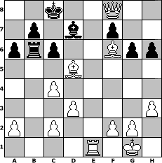 Partie-Notation im PGN-Format [Event "Zwischendurch mal ein paar eigene Z"] [Site "www.mySchach.de"] [Date "2009.06.25"] [Round "1"] [White "SlowBrain"] [Black "Master1"] [ECO "C47"] [WhitemyELO "1451"] [BlackmyELO "1273"] [Result "1-0"] [TimeControl "10/1728000"] [WhiteDays "57"] [BlackDays "55"] [MySchachNr "56944"] 1. e4 e5 2. Nf3 Nc6 3. Nc3 Nf6 4. Be2 Bb4 5. d3 Bxc3+ 6. bxc3 d5 7. exd5 Qxd5 8. O-O Bf5 9. c4 Qd6 10. Bb2 h6 11. Qc1 a6 12. h3 O-O-O 13. Nxe5 Nxe5 14. Qf4 Qe6 15. Qxe5 Rd6 16. Bf3 g6 17. Qa5 Rb6 18. Be5 Re8 19. Rfe1 Qc6 20. Bxc6 Re6 21. Bd5 Re7 22. Bxf6 Rxe1+ 23. Rxe1 Bd7 24. Qa3 c6 25. Qf8+ 1-0 Stellungs-Notation im FEN-Format 2k2Q2/1p1b1p2/prp2Bpp/3B4/2P5/3P3P/P1P2PP1/4R1K1 - - - 1 25 Geschlagene Figuren Weiss: Geschlagene Figuren Schwarz: Klicken Sie auf eine geschlagene Figur um den gewünschten Zug darzustellen!