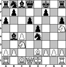 Partie-Notation im PGN-Format [Event "?"] [Site "www.mySchach.de"] [Date "2025.11.01"] [Round "?"] [White "Ziegert"] [Black "Winston"] [ECO "B28"] [WhitemyELO "1990"] [BlackmyELO "1539"] [Result "*"] [TimeControl "10/2592000"] [WhiteDays "28"] [BlackDays "60"] [MySchachNr "133854"] 1. e4 c5 2. Nf3 a6 3. d4 cxd4 4. Nxd4 h6 5. c4 e5 6. Nf5 Nf6 7. Nc3 Bb4 8. Nxg7+ Kf8 9. Nh5 d6 10. Be2 Nxe4 * Stellungs-Notation im FEN-Format rnbq1k1r/1p3p2/p2p3p/4p2N/1bP1n3/2N5/PP2BPPP/R1BQK2R w KQ - 0 11 Geschlagene Figuren Weiss: Geschlagene Figuren Schwarz: Klicken Sie auf eine geschlagene Figur um den gewünschten Zug darzustellen!