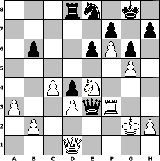 Partie-Notation im PGN-Format [Event "Aljechin zum z\'Nacht...."] [Site "www.mySchach.de"] [Date "2006.09.09"] [Round "1"] [White "Holzhacker"] [Black "Robur"] [ECO "B02"] [WhitemyELO "2046"] [BlackmyELO "1821"] [Result "1-0"] [TimeControl "10/864000"] [WhiteDays "10"] [BlackDays "01"] [MySchachNr "28295"] 1. e4 Nf6 2. e5 Nd5 3. Bc4 Nb6 4. Bb3 c5 5. d3 Nc6 6. Bf4 e6 7. Nc3 d6 8. exd6 Bxd6 9. Bxd6 Qxd6 10. Nf3 O-O 11. Ne4 Qe7 12. O-O Rd8 13. Qe2 Nd4 14. Nxd4 cxd4 15. Rae1 a5 16. a3 a4 17. Ba2 Ra5 18. f4 Rb5 19. f5 Kh8 20. f6 Qf8 21. c4 Re5 22. Qf2 g6 23. Bb1 Kg8 24. Bc2 Ra5 25. Qd2 Rf5 26. g4 Rxf1+ 27. Rxf1 Bd7 28. Qa5 Na8 29. Bxa4 b6 30. Qa7 Bxa4 31. Qxa4 Qh6 32. Kg2 Qe3 33. Qd1 Nc7 34. g5 Ne8 35. Rf3 1-0 Stellungs-Notation im FEN-Format 3rn1k1/5p1p/1p2pPp1/6P1/2PpN3/P2PqR2/1P4KP/3Q4 - - - 2 35 Geschlagene Figuren Weiss: ![]() ![]() ![]() ![]() ![]() ![]() ![]() ![]() ![]() ![]() ![]() ![]() ![]() ![]() ![]() Geschlagene Figuren Schwarz: ![]() ![]() ![]() ![]() ![]() ![]() ![]() ![]() ![]() ![]() ![]() ![]() ![]() ![]() ![]() Klicken Sie auf eine geschlagene Figur um den gewünschten Zug darzustellen!