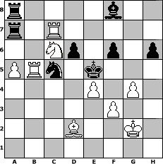 Partie-Notation im PGN-Format [Event "Fr"] [Site "www.mySchach.de"] [Date "2007.03.22"] [Round "1"] [Board "2"] [White "Phantasos"] [Black "Joschi"] [ECO "A57"] [WhitemyELO "2152"] [BlackmyELO "1647"] [Result "1-0"] [TimeControl "10/1728000"] [WhiteDays "12"] [BlackDays "15"] [MySchachNr "33551"] 1. d4 Nf6 2. c4 c5 3. d5 b5 4. Nf3 g6 5. cxb5 a6 6. e3 axb5 7. Bxb5 Bg7 8. Nc3 O-O 9. O-O Ba6 10. Qd3 d6 11. a4 Bxb5 12. Nxb5 Nbd7 13. e4 Qb6 14. Bg5 h6 15. Bd2 Rfb8 16. h3 Ne8 17. Rfb1 Nc7 18. Nxc7 Qxc7 19. Ra2 Rb7 20. a5 Rba7 21. b4 cxb4 22. Bxb4 Nc5 23. Qc2 Na6 24. Bd2 Qxc2 25. Rxc2 Nc5 26. Rc4 g5 27. Rb5 Kh7 28. g3 Kg6 29. g4 f6 30. h4 gxh4 31. Nxh4+ Kf7 32. Kg2 e6 33. dxe6+ Kxe6 34. Nf5 Bf8 35. f3 Nb7 36. Rc7 Nc5 37. Nd4+ Ke5 38. Nc6+ 1-0 Stellungs-Notation im FEN-Format r4b2/r1R5/2Np1p1p/PRn1k3/4P1P1/5P2/3B2K1/8 - - - 6 38 Geschlagene Figuren Weiss: Geschlagene Figuren Schwarz: Klicken Sie auf eine geschlagene Figur um den gewünschten Zug darzustellen!