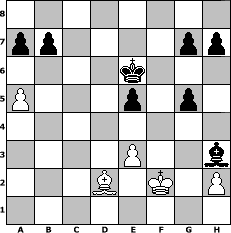 Partie-Notation im PGN-Format [Event "my schach.de darf nicht einschlafen!!"] [Site "www.mySchach.de"] [Date "2018.08.17"] [Round "1"] [White "Naunhofer"] [Black "kalle"] [ECO "D02"] [WhitemyELO "1673"] [BlackmyELO "1688"] [Result "0-1"] [TimeControl "10/1728000"] [WhiteDays "14"] [BlackDays "14"] [MySchachNr "112871"] 1. d4 d5 2. Nf3 Nf6 3. c4 e6 4. Nc3 Nbd7 5. e3 c6 6. Be2 dxc4 7. Bxc4 c5 8. O-O cxd4 9. Nxd4 Bb4 10. Bd2 O-O 11. a3 Be7 12. Be2 e5 13. Nf5 Nc5 14. Nxe7+ Qxe7 15. b4 Ne6 16. Bf3 Ng5 17. Nd5 Nxf3+ 18. Qxf3 Nxd5 19. Qxd5 Rd8 20. Qa2 Be6 21. Qb2 Rac8 22. Rac1 f6 23. b5 Qd6 24. Bb4 Qd5 25. a4 Rxc1 26. Qxc1 Rc8 27. Qb1 Qb3 28. Qxb3 Bxb3 29. a5 Kf7 30. g4 Rc4 31. Bd2 Rxg4+ 32. Kh1 Bc4 33. f3 Bxb5 34. fxg4 Bxf1 35. Kg1 Bh3 36. g5 fxg5 37. Kf2 Ke6 0-1 Stellungs-Notation im FEN-Format 8/pp4pp/4k3/P3p1p1/8/4P2b/3B1K1P/8 - - - 2 38 Geschlagene Figuren Weiss: Geschlagene Figuren Schwarz: Klicken Sie auf eine geschlagene Figur um den gewünschten Zug darzustellen!