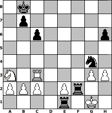 Partie-Notation im PGN-Format [Event "Sommerloch"] [Site "www.mySchach.de"] [Date "2016.07.24"] [Round "2"] [White "Schefsche"] [Black "hape50"] [ECO "C22"] [WhitemyELO "1434"] [BlackmyELO "1283"] [Result "0-1"] [TimeControl "10/2592000"] [WhiteDays "108"] [BlackDays "113"] [MySchachNr "104273"] 1. e4 e5 2. d4 exd4 3. Qxd4 d6 4. Nf3 h6 5. Bc4 Qf6 6. O-O c6 7. e5 Qe7 8. Re1 Be6 9. exd6 Qxd6 10. Qxd6 Bxd6 11. Nd4 Ne7 12. Bxe6 fxe6 13. Rxe6 Bc5 14. Be3 Nd7 15. Nf5 Kf7 16. Nxg7 Bxe3 17. fxe3 Rag8 18. Rxe7+ Kxe7 19. Nf5+ Kd8 20. Nc3 Rg6 21. Ne4 Nf6 22. Nc5 Kc7 23. Rd1 Rh7 24. Ne6+ Kb6 25. Nd6 Ng4 26. Rd3 Rxe6 27. Nc8+ Kc7 28. Nxa7 Nxe3 29. Rc3 Ng4 30. g3 Rf7 31. Nb5+ Kb8 32. Na3 Rf2 33. h3 Re1# 0-1 Stellungs-Notation im FEN-Format 1k6/1p6/2p4p/8/6n1/N1R3PP/PPP1Pr2/4r1K1 - - - 1 34 Geschlagene Figuren Weiss: ![]() ![]() ![]() ![]() ![]() ![]() ![]() ![]() ![]() ![]() ![]() ![]() ![]() ![]() ![]() Geschlagene Figuren Schwarz: ![]() ![]() ![]() ![]() ![]() ![]() ![]() ![]() ![]() ![]() ![]() ![]() ![]() ![]() ![]() Klicken Sie auf eine geschlagene Figur um den gewünschten Zug darzustellen!