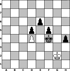 Partie eroeffnet am 24.11.2007, 00:03 Uhr und beendet am 23.05.2008, 19:53 Uhr Spieler weiss: Master1 Spieler schwarz: lasker lasker hat die Partie gewonnen! | |