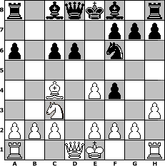 Partie-Notation im PGN-Format [Event "^^Lust, Laune und Spannung am Schach!!!^^"] [Site "www.mySchach.de"] [Date "2007.09.24"] [Round "1"] [White "Andylein1989"] [Black "Naunhofer"] [ECO "B33"] [WhitemyELO "1440"] [BlackmyELO "1646"] [Result "0-1"] [TimeControl "10/864000"] [WhiteDays "17"] [BlackDays "10"] [MySchachNr "38456"] 1. e4 c5 2. Nf3 Nc6 3. d4 cxd4 4. Nxd4 Nf6 5. Nc3 a6 6. Bf4 d6 7. Nxc6 bxc6 8. Bc4 e5 9. h3 exf4 0-1 Stellungs-Notation im FEN-Format r1bqkb1r/5ppp/p1pp1n2/8/2B1Pp2/2N4P/PPP1PPP1/R2QK2R - KQkq - 0 10 Geschlagene Figuren Weiss: Geschlagene Figuren Schwarz: Klicken Sie auf eine geschlagene Figur um den gewünschten Zug darzustellen!