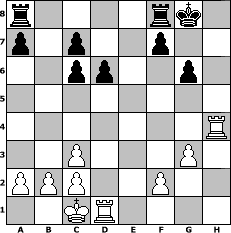 Partie-Notation im PGN-Format [Event "7erD"] [Site "www.mySchach.de"] [Date "2010.09.27"] [Round "2"] [White "woern63"] [Black "werderfan"] [ECO "C42"] [WhitemyELO "1664"] [BlackmyELO "1511"] [Result "1/2-1/2"] [TimeControl "10/3456000"] [WhiteDays "40"] [BlackDays "39"] [MySchachNr "68609"] 1. e4 e5 2. Nf3 Nf6 3. Nxe5 d6 4. Nf3 Nxe4 5. Nc3 Nxc3 6. dxc3 Bg4 7. Bf4 Be7 8. h3 Bh5 9. Be2 O-O 10. Qd5 Bxf3 11. Bxf3 Nc6 12. O-O-O h6 13. g3 Bg5 14. Bxg5 Qxg5+ 15. Qxg5 hxg5 16. h4 gxh4 17. Rxh4 g6 18. Bxc6 bxc6 1/2-1/2 Stellungs-Notation im FEN-Format r4rk1/p1p2p2/2pp2p1/8/7R/2P3P1/PPP2P2/2KR4 - - - 0 19 Geschlagene Figuren Weiss: Geschlagene Figuren Schwarz: Klicken Sie auf eine geschlagene Figur um den gewünschten Zug darzustellen!