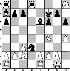 Partie-Notation im PGN-Format [Event "Svetlana Open 2012"] [Site "www.mySchach.de"] [Date "2012.03.22"] [Round "1"] [White "Grubengeist"] [Black "Lemmi11"] [ECO "C54"] [WhitemyELO "1895"] [BlackmyELO "1832"] [Result "1/2-1/2"] [TimeControl "10/2592000"] [WhiteDays "30"] [BlackDays "29"] [MySchachNr "80763"] 1. e4 e5 2. Nf3 Nc6 3. Bc4 Bc5 4. c3 Nf6 5. d3 d6 6. O-O a6 7. d4 Ba7 8. dxe5 Nxe5 9. Nxe5 dxe5 10. Qxd8+ Kxd8 11. Nd2 Ke7 12. Nf3 Nxe4 13. Nxe5 Be6 14. Bd3 Nc5 15. Bc2 Rhd8 16. Bf4 h6 17. Rfe1 f6 18. Ng6+ Kf7 19. h4 Nd3 20. Nh8+ Ke7 21. Ng6+ Kf7 22. Nh8+ Ke7 23. Ng6+ Kf7 24. Nh8+ 1/2-1/2 Stellungs-Notation im FEN-Format r2r3N/bpp2kp1/p3bp1p/8/5B1P/2Pn4/PPB1PPP1/R3R1K1 - - - 10 24 Geschlagene Figuren Weiss: Geschlagene Figuren Schwarz: Klicken Sie auf eine geschlagene Figur um den gewünschten Zug darzustellen!