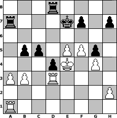 Partie-Notation im PGN-Format [Event "Herbstturnier 2022"] [Site "www.mySchach.de"] [Date "2022.09.26"] [Round "2"] [White "alibengali"] [Black "muellerh"] [ECO "A01"] [WhitemyELO "1707"] [BlackmyELO "1540"] [Result "1/2-1/2"] [TimeControl "10/1728000"] [WhiteDays "48"] [BlackDays "62"] [MySchachNr "127319"] 1. b3 e5 2. Bb2 Nc6 3. c4 Bb4 4. Nc3 Nf6 5. Nf3 O-O 6. e3 d6 7. d4 Ne4 8. Qc2 Bf5 9. a3 Bxc3+ 10. Bxc3 g6 11. Bd3 exd4 12. Bxe4 Bxe4 13. Qxe4 dxc3 14. Qc2 Qf6 15. Rc1 Ne5 16. Nxe5 Qxe5 17. Qxc3 Qxc3+ 18. Rxc3 c6 19. O-O Rad8 20. Rd3 Rd7 21. Rfd1 Rfd8 22. c5 d5 23. e4 d4 24. f4 b6 25. cxb6 axb6 26. Kf2 c5 27. Kf3 b5 28. e5 Kf8 29. g4 Ke7 30. Ke4 Ra8 31. Ra1 Rda7 32. Kd5 Rc7 33. f5 Rd8+ 34. Ke4 g5 35. Rc1 Ra7 36. Ra1 1/2-1/2 Stellungs-Notation im FEN-Format 3r4/r3kp1p/8/1pp1PPp1/3pK1P1/PP1R4/7P/R7 - - - 3 36 Geschlagene Figuren Weiss: Geschlagene Figuren Schwarz: Klicken Sie auf eine geschlagene Figur um den gewünschten Zug darzustellen!