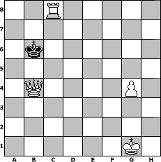 Partie-Notation im PGN-Format [Event "Sweety Tunier"] [Site "www.mySchach.de"] [Date "2006.02.28"] [Round "2"] [White "Andylein1989"] [Black "carlo"] [ECO "C40"] [WhitemyELO "1660"] [BlackmyELO "1046"] [Result "1-0"] [TimeControl "10/2592000"] [WhiteDays "208"] [BlackDays "203"] [MySchachNr "23013"] 1. e4 e5 2. Nf3 f6 3. Nc3 d5 4. exd5 b6 5. Bb5+ Bd7 6. Bxd7+ Nxd7 7. O-O Ne7 8. d4 c6 9. dxc6 Nxc6 10. dxe5 fxe5 11. Re1 g6 12. Bg5 Be7 13. Bxe7 Qxe7 14. Nd5 Qd6 15. Nc3 Qb4 16. Nd5 Qd6 17. Qd2 O-O-O 18. Rad1 Rhe8 19. Nxb6+ Kc7 20. Qxd6+ Kxb6 21. Nxe5 Ndxe5 22. Qf6 Rc8 23. Rd6 Kb7 24. Qg7+ Rc7 25. Qf6 Rf7 26. Qxf7+ Nxf7 27. Rxe8 Nxd6 28. Re6 Nc4 29. b3 Na3 30. Re2 Nb1 31. h4 Nc3 32. Re8 Nxa2 33. Rh8 h5 34. Rh7+ Kb6 35. Rh6 Ne5 36. f4 Ng4 37. Rxg6+ Kb7 38. Rg5 Nf6 39. Rf5 Ng4 40. Rxh5 Ne3 41. c4 Nc1 42. g3 Nxb3 43. Rb5+ Ka6 44. Rxb3 Nxc4 45. g4 Na5 46. Ra3 Kb6 47. h5 Nc6 48. h6 Ne7 49. h7 Ng6 50. f5 Nh8 51. Rc3 a5 52. f6 Kb5 53. Rc8 Nf7 54. h8=Q Nxh8 55. Rxh8 a4 56. f7 a3 57. f8=Q Ka4 58. Qf2 Kb3 59. Ra8 Kb4 60. Qa2 Kc3 61. Qxa3+ Kc4 62. Rd8 Kb5 63. Rc8 Kb6 64. Qb4+ 1-0 Stellungs-Notation im FEN-Format 2R5/8/1k6/8/1Q4P1/8/8/6K1 - - - 6 64 Geschlagene Figuren Weiss: Geschlagene Figuren Schwarz: Klicken Sie auf eine geschlagene Figur um den gewünschten Zug darzustellen!