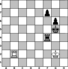 Partie-Notation im PGN-Format [Event "Bremer Schl"] [Site "www.mySchach.de"] [Date "2008.11.01"] [Round "2"] [White "muetoe"] [Black "larlinde"] [ECO "E32"] [WhitemyELO "1940"] [BlackmyELO "2207"] [Result "0-1"] [TimeControl "10/2592000"] [WhiteDays "184"] [BlackDays "171"] [MySchachNr "49454"] 1. d4 Nf6 2. c4 e6 3. Nc3 Bb4 4. Qc2 O-O 5. a3 Bxc3+ 6. Qxc3 b6 7. Bg5 Bb7 8. Nf3 d6 9. Nd2 h6 10. Bh4 Nbd7 11. e3 e5 12. dxe5 Nxe5 13. Be2 Re8 14. f4 Ned7 15. O-O Ne4 16. Nxe4 Qxh4 17. Ng3 Re6 18. Bf3 Bxf3 19. Rxf3 Rae8 20. Nf5 Qf6 21. Nd4 Re4 22. Rc1 Nc5 23. b3 a5 24. b4 Ne6 25. Nb3 Qxc3 26. Rxc3 axb4 27. axb4 Nf8 28. Nd2 R4e7 29. Ra3 Nd7 30. h3 Nf6 31. Kf2 d5 32. cxd5 Rd8 33. e4 Nxe4+ 34. Nxe4 Rxe4 35. g3 Rxd5 36. Rfc3 Rd7 37. Ra7 Rxb4 38. Raxc7 Rxc7 39. Rxc7 g6 40. Rb7 b5 41. Kf3 h5 42. Kg2 Kg7 43. Rb6 Rb1 44. g4 hxg4 45. hxg4 b4 46. Rb5 b3 47. g5 b2 48. Rb7 Kf8 49. Kh2 Ke8 50. Kg2 Kd8 51. Rb5 Kd7 52. Rb3 Kd6 53. Rb5 Kc6 54. Rb3 Kc5 55. Rb7 Kd4 56. Rb3 Ke4 57. Rb4+ Ke3 58. Kh2 Rf1 59. Rb3+ Kxf4 60. Rxb2 Kxg5 61. Kg2 Rf4 0-1 Stellungs-Notation im FEN-Format 8/5p2/6p1/6k1/5r2/8/1R4K1/8 - - - 2 62 Geschlagene Figuren Weiss: Geschlagene Figuren Schwarz: Klicken Sie auf eine geschlagene Figur um den gewünschten Zug darzustellen!