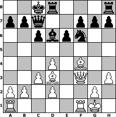 Partie-Notation im PGN-Format [Event "Albspiele 13"] [Site "www.mySchach.de"] [Date "2011.06.10"] [Round "1"] [White "haggard"] [Black "nogumo"] [ECO "D00"] [WhitemyELO "1937"] [BlackmyELO "1607"] [Result "1/2-1/2"] [TimeControl "10/1728000"] [WhiteDays "20"] [BlackDays "16"] [MySchachNr "74480"] 1. d4 d5 2. e4 dxe4 3. Nc3 Nf6 4. f3 exf3 5. Nxf3 Bg4 6. h3 Bxf3 7. Qxf3 c6 8. Be3 e6 9. Bd3 Be7 10. O-O Nbd7 11. Ne4 Qc7 12. c3 O-O-O 13. Nxf6 Nxf6 14. Bf4 Bd6 15. Bg5 Be7 16. Bf4 Bd6 17. Bg5 Be7 18. Bf4 Bd6 1/2-1/2 Stellungs-Notation im FEN-Format 2kr3r/ppq2ppp/2pbpn2/8/3P1B2/2PB1Q1P/PP1P2P1/R4RK1 - - - 10 19 Geschlagene Figuren Weiss: Geschlagene Figuren Schwarz: Klicken Sie auf eine geschlagene Figur um den gewünschten Zug darzustellen!