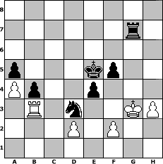 Partie-Notation im PGN-Format [Event "Amethyst"] [Site "www.mySchach.de"] [Date "2022.01.23"] [Round "1"] [White "boeserWatz"] [Black "beowulf"] [ECO "A80"] [WhitemyELO "1358"] [BlackmyELO "1385"] [Result "0-1"] [TimeControl "10/2592000"] [WhiteDays "192"] [BlackDays "210"] [MySchachNr "124337"] 1. d4 f5 2. Nc3 e6 3. e4 d5 4. e5 c5 5. Nf3 Nc6 6. dxc5 Bxc5 7. g3 Nge7 8. Bb5 O-O 9. Ng5 h6 10. Na4 Bb4+ 11. c3 Bxc3+ 12. Nxc3 hxg5 13. Bxg5 Bd7 14. O-O a6 15. Be2 Qe8 16. Bh5 g6 17. Bf3 Nxe5 18. Re1 Nc4 19. b3 Nd6 20. Qd4 Nc6 21. Qh4 Nf7 22. Bf6 e5 23. Bxd5 Be6 24. Bxc6 Qxc6 25. Rac1 Qf3 26. Re3 Qh5 27. Rd1 Qxh4 28. gxh4 e4 29. Rg3 Rac8 30. Rxg6+ Kh7 31. Rg7+ Kh6 32. Ne2 Rg8 33. Nf4 Rxg7+ 34. Bxg7+ Kxg7 35. Nxe6+ Kf6 36. Nf4 Rc2 37. a4 Ke7 38. Nd5+ Ke6 39. Ne3 Rb2 40. Nc4 Rxb3 41. Na5 Rb4 42. Ra1 Nh6 43. Kg2 Ng4 44. Ra2 b6 45. Nc6 Rc4 46. Nd8+ Ke7 47. Nb7 Rc7 48. h3 Ne5 49. Kg3 Rxb7 50. Kf4 Ke6 51. Ra3 Ng6+ 52. Kg5 Ne5 53. Kf4 Rh7 54. Kg5 Nf3+ 55. Kf4 Rxh4+ 56. Kg3 Rh7 57. Rb3 Ke5 58. Kg2 Rg7+ 59. Kf1 Rb7 60. Rb2 b5 61. Kg2 Ne1+ 62. Kf1 Nd3 63. Rb3 b4 64. Kg2 a5 65. Kg3 Rg7+ 0-1 Stellungs-Notation im FEN-Format 8/6r1/8/p3kp2/Pp2p3/1R1n2KP/3P1P2/8 - - - 2 66 Geschlagene Figuren Weiss: Geschlagene Figuren Schwarz: Klicken Sie auf eine geschlagene Figur um den gewünschten Zug darzustellen!
