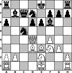 Partie-Notation im PGN-Format [Event "Helmut-Rahn-Gedenkturnier"] [Site "www.mySchach.de"] [Date "2003.08.28"] [Round "1"] [White "gichtwicht"] [Black "myfairlady"] [ECO "B41"] [WhitemyELO "1554"] [BlackmyELO "1542"] [Result "0-1"] [TimeControl "10/3456000"] [WhiteDays "42"] [BlackDays "79"] [MySchachNr "932"] 1. e4 c5 2. Nf3 e6 3. d4 cxd4 4. Nxd4 a6 5. c4 Qc7 6. Nc3 Nf6 7. g3 d6 8. Bh3 Qxc4 9. Bf1 Qc7 10. f4 Be7 11. Nf3 Nbd7 12. Bd3 b5 13. Be3 Bb7 14. Qd2 b4 15. Ne2 Nxe4 16. Qxb4 Nec5 17. Qd4 Bf6 0-1 Stellungs-Notation im FEN-Format r3k2r/1bqn1ppp/p2ppb2/2n5/3Q1P2/3BBNP1/PP2N2P/R3K2R - KQkq - 3 18 Geschlagene Figuren Weiss: Geschlagene Figuren Schwarz: Klicken Sie auf eine geschlagene Figur um den gewünschten Zug darzustellen!