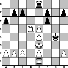 Partie-Notation im PGN-Format [Event "4. HSF-Clubturnier - A-Finale"] [Site "www.mySchach.de"] [Date "2014.02.08"] [Round "1"] [White "jeremyt"] [Black "Kerendar"] [ECO "C41"] [WhitemyELO "2047"] [BlackmyELO "1470"] [Result "1-0"] [TimeControl "10/2592000"] [WhiteDays "89"] [BlackDays "90"] [MySchachNr "92765"] 1. e4 e5 2. Nf3 d6 3. d4 Nc6 4. Bb5 Bd7 5. Nc3 a6 6. Bxc6 Bxc6 7. dxe5 dxe5 8. Qxd8+ Rxd8 9. Nxe5 Bd7 10. Nxd7 Rxd7 11. O-O Bb4 12. Nd5 Bd6 13. Bf4 Ne7 14. Bxd6 Nxd5 15. Be5 Nf6 16. Rad1 Re7 17. Bxf6 gxf6 18. Rfe1 O-O 19. f3 Rfe8 20. Kf2 Kg7 21. g4 Kg6 22. Ke3 Kg5 23. Rd5+ Re5 24. f4+ Kxg4 25. fxe5 1-0 Stellungs-Notation im FEN-Format 4r3/1pp2p1p/p4p2/3RP3/4P1k1/4K3/PPP1P2P/4R3 - - - 0 25 Geschlagene Figuren Weiss: Geschlagene Figuren Schwarz: Klicken Sie auf eine geschlagene Figur um den gewünschten Zug darzustellen!