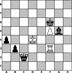 Partie-Notation im PGN-Format [Event "Bernstein"] [Site "www.mySchach.de"] [Date "2022.05.20"] [Round "1"] [White "borsti"] [Black "Haneken"] [ECO "A02"] [WhitemyELO "1233"] [BlackmyELO "1113"] [Result "0-1"] [TimeControl "10/864000"] [WhiteDays "10"] [BlackDays "10"] [MySchachNr "125806"] 1. f4 e6 2. Nf3 Be7 3. d4 Nf6 4. a3 O-O 5. e3 Ne4 6. Bd3 f5 7. Bxe4 fxe4 8. Ne5 d6 9. Ng4 d5 10. Nc3 Nc6 11. Qe2 Na5 12. b3 Bd7 13. Ne5 Be8 14. Bd2 c6 15. O-O Bf6 16. Ng4 Bh4 17. g3 Be7 18. Na4 Bh5 19. h3 Rf6 20. Qg2 Rg6 21. Ne5 Rf6 22. g4 Be8 23. g5 Rf5 24. h4 Bh5 25. Nc5 Bf3 26. Nxf3 exf3 27. Qxf3 h6 28. Nxe6 Qd6 29. Nxg7 Kxg7 30. Qg4 Rf7 31. gxh6+ Kxh6 32. f5 Rg7 33. Qxg7+ Kxg7 34. Bxa5 Bxh4 35. Bb4 Qg3+ 36. Kh1 Rf8 37. Bxf8+ Kxf8 38. Rf4 Kf7 39. Rf1 Bg5 40. R1f3 Qe1+ 41. Rf1 Qxe3 42. Rf3 Qe4 43. Kg2 Qxd4 44. a4 a5 45. Kg3 Qh4+ 46. Kg2 Qe4 47. Kf2 Qxc2+ 48. Kg3 d4 49. Kg4 Kf6 50. R1f2 Qd1 51. Rf1 Qe2 52. R1f2 Qe4+ 53. Kh3 Qh4+ 54. Kg2 c5 55. Kf1 b6 56. Ke1 Qe4+ 57. Kf1 d3 58. Kg2 d2 59. Rf1 c4 60. bxc4 Qxc4 61. Kf2 Qxa4 62. Ke2 b5 63. Kd3 d1=Q+ 64. Rxd1 Qxd1+ 65. Ke4 b4 66. Rd3 Qc2 67. Kd4 a4 68. Rf3 b3 0-1 Stellungs-Notation im FEN-Format 8/8/5k2/5Pb1/p2K4/1p3R2/2q5/8 - - - 0 69 Geschlagene Figuren Weiss: Geschlagene Figuren Schwarz: Klicken Sie auf eine geschlagene Figur um den gewünschten Zug darzustellen!