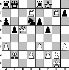 Partie-Notation im PGN-Format [Event "F"] [Site "www.mySchach.de"] [Date "2013.07.14"] [Round "1"] [White "brucybabe"] [Black "beowulf"] [ECO "D10"] [WhitemyELO "1679"] [BlackmyELO "1440"] [Result "1-0"] [TimeControl "10/1728000"] [WhiteDays "19"] [BlackDays "20"] [MySchachNr "89271"] 1. d4 d5 2. c4 c6 3. e3 Nf6 4. Nf3 Bg4 5. Nc3 e6 6. cxd5 cxd5 7. Be2 Bb4 8. Qa4+ Nc6 9. O-O O-O 10. a3 Bxc3 11. bxc3 a6 12. Rb1 Qc7 13. h3 Bf5 14. Rb2 b5 15. Qd1 Rfe8 16. Bd3 Be4 17. Bxe4 Nxe4 18. Rc2 Na5 19. Bb2 Nc4 20. Qc1 f5 21. Ne5 Nxe5 22. dxe5 Qxe5 23. c4 Qd6 24. cxd5 Qxd5 25. Rd1 Qb7 26. Rc7 Qb8 27. Rxg7+ Kf8 28. Rdd7 Nd6 29. Qc5 1-0 Stellungs-Notation im FEN-Format rq2rk2/3R2Rp/p2np3/1pQ2p2/8/P3P2P/1B1P1PP1/6K1 - - - 4 29 Geschlagene Figuren Weiss: Geschlagene Figuren Schwarz: Klicken Sie auf eine geschlagene Figur um den gewünschten Zug darzustellen!