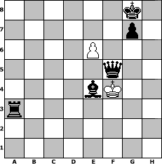 Partie-Notation im PGN-Format [Event "Herbstturnier bis 1600"] [Site "www.mySchach.de"] [Date "2025.10.14"] [Round "1"] [White "Master1"] [Black "faustballer"] [ECO "D00"] [WhitemyELO "1404"] [BlackmyELO "1445"] [Result "0-1"] [TimeControl "10/2592000"] [WhiteDays "133"] [BlackDays "180"] [MySchachNr "133750"] 1. d4 d5 2. e3 a6 3. Bd3 e6 4. Nf3 h6 5. Nbd2 Nc6 6. O-O Nf6 7. Re1 Be7 8. c3 b5 9. e4 dxe4 10. Nxe4 Bb7 11. b4 Nh7 12. Be3 f5 13. Nc5 Bxc5 14. bxc5 O-O 15. Bf4 Rf6 16. Ne5 Nxe5 17. Bxe5 Rg6 18. a3 Bxg2 19. Bg3 Bc6 20. f4 Qd5 21. Be4 fxe4 22. Re3 Rf8 23. Kf2 Ng5 24. h4 Nh7 25. h5 Qxh5 26. Qxh5 Be8 27. Rxe4 Rxg3 28. Qe5 Rg6 29. Qxc7 Ng5 30. Ke3 Nxe4 31. Kxe4 Rg4 32. Rf1 Bg6+ 33. Ke3 Bf5 34. Qd6 h5 35. c6 h4 36. c7 Rg6 37. Qxa6 e5 38. dxe5 Rxa6 39. Ra1 Rc8 40. Kd4 Rxc7 41. Kd5 Rxc3 42. Kd4 Rcxa3 43. Re1 h3 44. Rh1 R6a4+ 45. Kc5 Rc4+ 46. Kxb5 Rxf4 47. Re1 Re4 48. Rxe4 Bxe4 49. Kc5 h2 50. e6 h1=Q 51. Kd6 Qd1+ 52. Ke5 Qd5+ 53. Kf4 Qf5# 0-1 Stellungs-Notation im FEN-Format 6k1/6p1/4P3/5q2/4bK2/r7/8/8 - - - 6 54 Geschlagene Figuren Weiss: Geschlagene Figuren Schwarz: Klicken Sie auf eine geschlagene Figur um den gewünschten Zug darzustellen!
