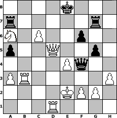 | Partie-Notation im PGN-Format [Event "Die Zauberformel"] [Site "www.mySchach.de"] [Date "2021.09.19"] [Round "1"] [White "wolni55"] [Black "lotchi"] [ECO "C40"] [WhitemyELO "1386"] [BlackmyELO "1371"] [Result "1-0"] [TimeControl "10/1728000"] [WhiteDays "18"] [BlackDays "17"] [MySchachNr "123019"] 1. e4 e5 2. Nf3 f6 3. Bc4 a6 4. a3 Bc5 5. d3 d6 6. h3 b5 7. Bxg8 Rxg8 8. b4 Bb6 9. c3 Bb7 10. Bb2 Nd7 11. Nfd2 g5 12. Qh5+ Ke7 13. Qxh7+ Kf8 14. Qf5 Qe7 15. c4 Bd4 16. Bxd4 exd4 17. Nf3 Ne5 18. Ke2 bxc4 19. Nxd4 c5 20. Ne6+ Ke8 21. bxc5 cxd3+ 22. Ke3 d5 23. Nd2 Nc4+ 24. Kxd3 Nxd2 25. Kxd2 Bc8 26. Qxd5 Bb7 27. c6 Bc8 28. Nc5 Rg7 29. Rab1 Ra7 30. Rb8 Qc7 31. Rb3 Qf4+ 32. Ke2 a5 33. Rd1 Ba6+ 34. Nxa6 1-0 Stellungs-Notation im FEN-Format 4k3/r5r1/N1P2p2/p2Q2p1/4Pq2/PR5P/4KPP1/3R4 - - - 0 34 Geschlagene Figuren Weiss:                              Geschlagene Figuren Schwarz:                               Klicken Sie auf eine geschlagene Figur um den gewünschten Zug darzustellen!