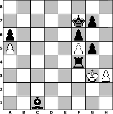 Partie-Notation im PGN-Format [Event "Energiekrise"] [Site "www.mySchach.de"] [Date "2022.10.29"] [Round "1"] [White "wolni55"] [Black "faustballer"] [ECO "C24"] [WhitemyELO "1512"] [BlackmyELO "1560"] [Result "0-1"] [TimeControl "10/1728000"] [WhiteDays "20"] [BlackDays "20"] [MySchachNr "127806"] 1. e4 e5 2. Bc4 Nf6 3. d3 h6 4. Nf3 d6 5. h3 a6 6. Nc3 c6 7. a4 Be7 8. d4 exd4 9. Qxd4 c5 10. Qd3 Nc6 11. b3 O-O 12. Bf4 Nb4 13. Qd2 Nh7 14. Nd5 Nxd5 15. Bxd5 Nf6 16. c4 Qb6 17. Rb1 Nxd5 18. Qxd5 Be6 19. Qd3 Qb4+ 20. Qd2 Qxd2+ 21. Nxd2 Bd7 22. O-O Be6 23. Rfe1 Rfd8 24. Nf1 b6 25. b4 Bxc4 26. bxc5 bxc5 27. Ne3 Be6 28. a5 Rab8 29. Rb6 Ra8 30. Nf5 Bxf5 31. exf5 Bf8 32. Rd1 d5 33. Rc6 c4 34. Bd2 Rdc8 35. Rxc8 Rxc8 36. Bc3 Rd8 37. g4 Bc5 38. Be5 f6 39. Bc7 Rd7 40. Bb6 Be7 41. Bd4 Bb4 42. Ra1 Rc7 43. Ra4 Bc5 44. Ba1 Kf7 45. Kg2 Bd6 46. Bd4 c3 47. Be3 c2 48. Ra1 Be5 49. Rf1 d4 50. Bc1 d3 51. f4 Bc3 52. Kf3 d2 53. Bxd2 Bxd2 54. Ke2 c1=Q 55. Rxc1 Bxc1 56. Kf3 Rc4 57. g5 Rxf4+ 58. Kg3 hxg5 0-1 Stellungs-Notation im FEN-Format 8/5kp1/p4p2/P4Pp1/5r2/6KP/8/2b5 - - - 0 59 Geschlagene Figuren Weiss: Geschlagene Figuren Schwarz: Klicken Sie auf eine geschlagene Figur um den gewünschten Zug darzustellen!