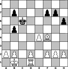 Partie-Notation im PGN-Format [Event "Opera "] [Site "www.mySchach.de"] [Date "2025.09.04"] [Round "1"] [White "skuehnel"] [Black "Master1"] [ECO "A50"] [WhitemyELO "1361"] [BlackmyELO "1388"] [Result "1-0"] [TimeControl "10/2592000"] [WhiteDays "104"] [BlackDays "108"] [MySchachNr "133632"] 1. d4 Nf6 2. c4 d5 3. cxd5 Qxd5 4. Nc3 Qd8 5. Nf3 e6 6. Bf4 Bb4 7. Qa4+ Nc6 8. O-O-O Nd5 9. Nxd5 exd5 10. e3 Bg4 11. Bb5 Bd7 12. Bxc6 Qe7 13. Bxd7+ Qxd7 14. Qxb4 Rb8 15. Ne5 Qe7 16. Qb5+ Kd8 17. Qxd5+ Ke8 18. Qb5+ Kd8 19. d5 a6 20. d6 axb5 21. dxe7+ Kxe7 22. Rd7+ Ke6 23. Rd1 Rhf8 24. Rxc7 Rbc8 25. Rxc8 Rxc8+ 26. Kb1 h6 27. Nf3 Rc6 28. Nd4+ Kd7 29. Nxc6+ Kxc6 30. e4 1-0 Stellungs-Notation im FEN-Format 8/1p3pp1/2k4p/1p6/4PB2/8/PP1P1PPP/1K1R4 - - - 0 30 Geschlagene Figuren Weiss: Geschlagene Figuren Schwarz: Klicken Sie auf eine geschlagene Figur um den gewünschten Zug darzustellen!