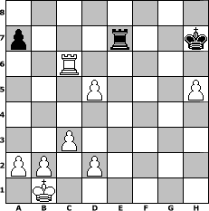 Partie-Notation im PGN-Format [Event "Fr"] [Site "www.mySchach.de"] [Date "2013.01.28"] [Round "1"] [White "Knight"] [Black "Caligula"] [ECO "D00"] [WhitemyELO "1206"] [BlackmyELO "1437"] [Result "1-0"] [TimeControl "10/864000"] [WhiteDays "10"] [BlackDays "10"] [MySchachNr "86306"] 1. d4 d5 2. e4 dxe4 3. Nc3 Nf6 4. f3 exf3 5. Qxf3 e6 6. Be3 Bb4 7. Nge2 O-O 8. O-O-O c6 9. Kb1 Re8 10. Bg5 Nbd7 11. h4 h6 12. Be3 Nd5 13. Nxd5 exd5 14. Bxh6 gxh6 15. c3 Bf8 16. g4 Nf6 17. g5 Bf5+ 18. Qxf5 Nh7 19. gxh6 Qf6 20. Qg4+ Qg6+ 21. Qxg6+ fxg6 22. h5 g5 23. Rg1 Bxh6 24. Nf4 Nf6 25. Nh3 Ne4 26. Bd3 g4 27. Rxg4+ Kh7 28. Rf1 Re7 29. Nf2 Kh8 30. Nxe4 dxe4 31. Bxe4 Rae8 32. Rg6 Rxe4 33. Rxh6+ Kg7 34. Rg6+ Kh7 35. Rf7+ Kh8 36. Rxb7 R8e7 37. Rxe7 Rxe7 38. Rxc6 Kh7 39. d5 1-0 Stellungs-Notation im FEN-Format 8/p3r2k/2R5/3P3P/8/2P5/PP1P4/1K6 - - - 0 39 Geschlagene Figuren Weiss: Geschlagene Figuren Schwarz: Klicken Sie auf eine geschlagene Figur um den gewünschten Zug darzustellen!