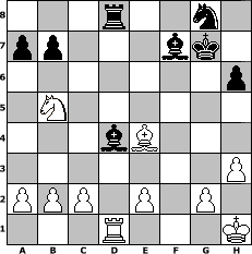 Partie-Notation im PGN-Format [Event "?"] [Site "www.mySchach.de"] [Date "2025.10.13"] [Round "?"] [White "ndziemba"] [Black "UPS"] [ECO "C41"] [WhitemyELO "1824"] [BlackmyELO "1660"] [Result "*"] [TimeControl "10/2592000"] [WhiteDays "21"] [BlackDays "16"] [MySchachNr "133733"] 1. e4 e5 2. Nf3 d6 3. Bc4 Be7 4. d4 exd4 5. Nxd4 Nf6 6. Nc3 Bd7 7. f3 O-O 8. O-O h6 9. h3 Nc6 10. Bd2 Nxd4 11. Bxh6 Nxf3+ 12. Rxf3 gxh6 13. Qd2 Kh7 14. Raf1 Be6 15. Bd3 Ng8 16. Nd5 Bg5 17. Qc3 f6 18. e5+ f5 19. exd6 Bf6 20. Rxf5 Bxc3 21. Rxf8+ Kg7 22. Rxd8 Bd4+ 23. Kh1 Rxd8 24. Nxc7 Bf7 25. Rd1 Rxd6 26. Nb5 Rd8 27. Be4 * Stellungs-Notation im FEN-Format 3r2n1/pp3bk1/7p/1N6/3bB3/7P/PPP1P1P1/3R3K b - - 3 27 Geschlagene Figuren Weiss: Geschlagene Figuren Schwarz: Klicken Sie auf eine geschlagene Figur um den gewünschten Zug darzustellen!
