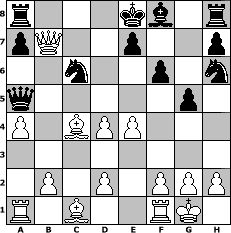 Partie-Notation im PGN-Format [Event "Wrixum-Open die IV"] [Site "www.mySchach.de"] [Date "2007.09.04"] [Round "1"] [White "Seneca"] [Black "Helmut48"] [ECO "D20"] [WhitemyELO "1572"] [BlackmyELO "1469"] [Result "1-0"] [TimeControl "10/2592000"] [WhiteDays "27"] [BlackDays "30"] [MySchachNr "37801"] 1. d4 d5 2. c4 dxc4 3. Nc3 Bd7 4. e4 b5 5. a4 c6 6. Nf3 b4 7. Na2 Qa5 8. Bxc4 Bg4 9. O-O Bxf3 10. Qxf3 f6 11. Qb3 Nh6 12. Nxb4 g5 13. Nxc6 Nxc6 14. Qb7 1-0 Stellungs-Notation im FEN-Format r3kb1r/pQ2p2p/2n2p1n/q5p1/P1BPP3/8/1P1P1PPP/R1B2RK1 - kq - 1 14 Geschlagene Figuren Weiss: Geschlagene Figuren Schwarz: Klicken Sie auf eine geschlagene Figur um den gewünschten Zug darzustellen!