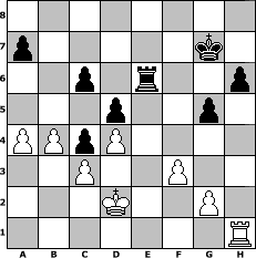 Partie-Notation im PGN-Format [Event "Opera "] [Site "www.mySchach.de"] [Date "2025.09.04"] [Round "1"] [White "Mynona"] [Black "skuehnel"] [ECO "D00"] [WhitemyELO "1448"] [BlackmyELO "1361"] [Result "1/2-1/2"] [TimeControl "10/2592000"] [WhiteDays "89"] [BlackDays "72"] [MySchachNr "133635"] 1. d4 d5 2. Bf4 c5 3. e3 Nc6 4. c3 Bf5 5. Bd3 e6 6. Bxf5 exf5 7. Qd3 g6 8. Nf3 c4 9. Qc2 Nf6 10. Nbd2 Bd6 11. Ne5 O-O 12. O-O-O Ne4 13. Rdf1 f6 14. Nxc6 bxc6 15. f3 Nxd2 16. Qxd2 g5 17. Bxd6 Qxd6 18. Qc2 f4 19. exf4 Qxf4+ 20. Qd2 Qxd2+ 21. Kxd2 Rae8 22. h4 Re6 23. hxg5 fxg5 24. Re1 Rfe8 25. Rxe6 Rxe6 26. b4 h6 27. a4 Kg7 1/2-1/2 Stellungs-Notation im FEN-Format 8/p5k1/2p1r2p/3p2p1/PPpP4/2P2P2/3K2P1/7R - - - 1 28 Geschlagene Figuren Weiss: Geschlagene Figuren Schwarz: Klicken Sie auf eine geschlagene Figur um den gewünschten Zug darzustellen!