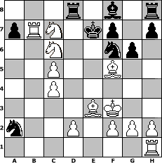 Partie-Notation im PGN-Format [Event "September 2017"] [Site "www.mySchach.de"] [Date "2017.08.31"] [Round "1"] [White "kalle"] [Black "MiFie"] [ECO "D06"] [WhitemyELO "1630"] [BlackmyELO "1010"] [Result "1-0"] [TimeControl "10/1728000"] [WhiteDays "25"] [BlackDays "31"] [MySchachNr "109395"] 1. d4 d5 2. c4 c5 3. dxc5 d4 4. e3 Nc6 5. Nf3 Bf5 6. Bd3 e5 7. Bxf5 dxe3 8. Qxd8+ Rxd8 9. Bxe3 Nb4 10. Na3 Nd3+ 11. Ke2 Nxb2 12. Nxe5 Nf6 13. Rab1 Na4 14. Rxb7 Nc3+ 15. Kf3 Nxa2 16. Nb5 g6 17. Nc7+ Ke7 18. Nc6# 1-0 Stellungs-Notation im FEN-Format 3r1b1r/pRN1kp1p/2N2np1/2P2B2/2P5/4BK2/n2P1PPP/7R - - - 3 18 Geschlagene Figuren Weiss: Geschlagene Figuren Schwarz: Klicken Sie auf eine geschlagene Figur um den gewünschten Zug darzustellen!