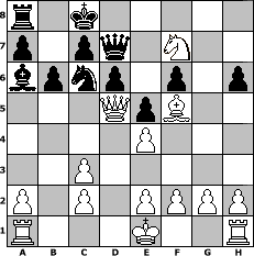 Partie-Notation im PGN-Format [Event "Sweety Tunier"] [Site "www.mySchach.de"] [Date "2006.02.28"] [Round "2"] [White "Andylein1989"] [Black "Biber"] [ECO "C40"] [WhitemyELO "1660"] [BlackmyELO "1193"] [Result "1-0"] [TimeControl "10/2592000"] [WhiteDays "60"] [BlackDays "60"] [MySchachNr "23026"] 1. e4 e5 2. Nf3 Bd6 3. d4 f6 4. dxe5 fxe5 5. Nc3 Nc6 6. Bc4 b6 7. Ng5 Qe7 8. Nf7 Bb4 9. Nxh8 Bxc3+ 10. bxc3 Nf6 11. Bg5 h6 12. Bxf6 gxf6 13. Bf7+ Kd8 14. Bg6 Ba6 15. Qd2 d6 16. Nf7+ Kc8 17. Qd5 Qd7 18. Bf5 1-0 Stellungs-Notation im FEN-Format r1k5/p1pq1N2/bpnp1p1p/3QpB2/4P3/2P5/P1P1PPPP/R3K2R - KQ - 5 18 Geschlagene Figuren Weiss: Geschlagene Figuren Schwarz: Klicken Sie auf eine geschlagene Figur um den gewünschten Zug darzustellen!