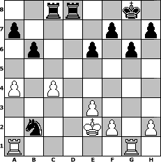 Partie eroeffnet am 18.02.2010, 00:01 Uhr und beendet am 24.02.2010, 14:42 Uhr Spieler weiss: reisinger Spieler schwarz: Zoidberg Zoidberg hat die Partie gewonnen!  | |