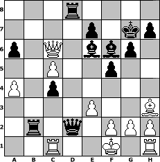 Partie-Notation im PGN-Format [Event "In Memoriam lotchi II"] [Site "www.mySchach.de"] [Date "2023.02.14"] [Round "1"] [White "Rotstift10"] [Black "jeremyt"] [ECO "D02"] [WhitemyELO "1676"] [BlackmyELO "2111"] [Result "0-1"] [TimeControl "10/864000"] [WhiteDays "29"] [BlackDays "21"] [MySchachNr "129405"] 1. d4 d5 2. Nf3 Nf6 3. c4 dxc4 4. Nc3 a6 5. a4 Nc6 6. e3 Na5 7. Nd2 Be6 8. Qf3 g6 9. Nde4 Nxe4 10. Qxe4 Nb3 11. Rb1 Bg7 12. Qxb7 c5 13. Qc6+ Kf8 14. dxc5 Rb8 15. Qf3 Nxc1 16. Rxc1 Rxb2 17. Qd1 Qa5 18. Be2 Bxc3+ 19. Kf1 Kg7 20. Bg4 f5 21. Bh3 Rd8 22. Qf3 Bf6 23. Qc6 Qd2 0-1 Stellungs-Notation im FEN-Format 3r4/4p1kp/p1Q1bbp1/2P2p2/P1p5/4P2B/1r1q1PPP/2R2K1R - - - 6 24 Geschlagene Figuren Weiss: Geschlagene Figuren Schwarz: Klicken Sie auf eine geschlagene Figur um den gewünschten Zug darzustellen!