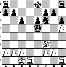 Partie-Notation im PGN-Format [Event "1-2009"] [Site "www.mySchach.de"] [Date "2009.01.01"] [Round "1"] [White "thw"] [Black "JerryWho"] [ECO "B18"] [WhitemyELO "1483"] [BlackmyELO "1575"] [Result "0-1"] [TimeControl "10/1728000"] [WhiteDays "60"] [BlackDays "39"] [MySchachNr "51249"] 1. e4 c6 2. d4 d5 3. Nc3 dxe4 4. Nxe4 Bf5 5. Ng3 Bg6 6. h4 h6 7. h5 Bh7 8. Nf3 Nd7 9. Bd3 Bxd3 10. Qxd3 e6 11. Bd2 Ngf6 12. Ne4 Nxe4 13. Qxe4 Nf6 14. Qe2 Qb6 15. O-O-O Bd6 16. Ne5 Qxd4 17. Bc3 Qe4 18. Qf3 Bxe5 19. Bxe5 Qxe5 0-1 Stellungs-Notation im FEN-Format r3k2r/pp3pp1/2p1pn1p/4q2P/8/5Q2/PPP2PP1/2KR3R - kq - 0 20 Geschlagene Figuren Weiss: Geschlagene Figuren Schwarz: Klicken Sie auf eine geschlagene Figur um den gewünschten Zug darzustellen!