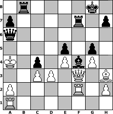Partie-Notation im PGN-Format [Event "Topas"] [Site "www.mySchach.de"] [Date "2022.08.07"] [Round "1"] [White "Andreas1954"] [Black "beowulf"] [ECO "C20"] [WhitemyELO "1305"] [BlackmyELO "1488"] [Result "0-1"] [TimeControl "10/864000"] [WhiteDays "10"] [BlackDays "10"] [MySchachNr "126731"] 1. e4 e5 2. d3 Nf6 3. f3 Nc6 4. Bg5 Be7 5. Bxf6 Bxf6 6. g4 O-O 7. Qd2 d5 8. Nc3 dxe4 9. Nxe4 Bh4+ 10. Kd1 f5 11. Bh3 fxe4 12. fxe4 Bg5 13. Qe2 Nd4 14. Qg2 Qf6 15. Ne2 Bd7 16. c3 Ne6 17. Rf1 Nf4 18. Nxf4 Bxf4 19. Rg1 g5 20. Kc2 c5 21. Rab1 Rf7 22. Rbf1 Raf8 23. Rf2 Qe6 24. b3 b5 25. Ra1 c4 26. bxc4 bxc4 27. Qf3 Ba4+ 28. Kb2 Rb8+ 29. Ka3 Qd6+ 30. Kxa4 Qa6# 0-1 Stellungs-Notation im FEN-Format 1r4k1/p4r1p/q7/4p1p1/K1p1PbP1/2PP1Q1B/P4R1P/R7 - - - 1 31 Geschlagene Figuren Weiss: Geschlagene Figuren Schwarz: Klicken Sie auf eine geschlagene Figur um den gewünschten Zug darzustellen!