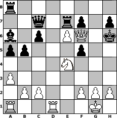 Partie-Notation im PGN-Format [Event "?"] [Site "www.mySchach.de"] [Date "2025.07.08"] [Round "?"] [White "spiderman"] [Black "Seneca"] [ECO "A04"] [WhitemyELO "1747"] [BlackmyELO "1541"] [Result "1-0"] [TimeControl "10/2592000"] [WhiteDays "23"] [BlackDays "30"] [MySchachNr "133506"] 1. Nf3 d6 2. e4 e5 3. d4 exd4 4. Nxd4 Nf6 5. Nc3 c6 6. Bf4 Be7 7. Be2 O-O 8. O-O b5 9. a3 a5 10. Qd3 Ba6 11. Qg3 Re8 12. Nf5 g6 13. Bxd6 Bxd6 14. Nxd6 Re6 15. Rfd1 Qc7 16. e5 Nh5 17. Bxh5 Nd7 18. Bg4 Re7 19. Bxd7 Rxd7 20. Nce4 Kg7 21. e6 Re7 22. Qe5+ Kh6 23. Nf5+ gxf5 24. Qf6+ 1-0 Stellungs-Notation im FEN-Format r7/2q1rp1p/b1p1PQ1k/pp3p2/4N3/P7/1PP2PPP/R2R2K1 - - - 1 24 Geschlagene Figuren Weiss: Geschlagene Figuren Schwarz: Klicken Sie auf eine geschlagene Figur um den gewünschten Zug darzustellen!