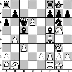 Partie-Notation im PGN-Format [Event "Herbstturnier 2025"] [Site "www.mySchach.de"] [Date "2025.09.16"] [Round "1"] [White "Yukiki"] [Black "kalle"] [ECO "B20"] [WhitemyELO "1542"] [BlackmyELO "1623"] [Result "1-0"] [TimeControl "10/1728000"] [WhiteDays "29"] [BlackDays "37"] [MySchachNr "133688"] 1. e4 c5 2. Bc4 e6 3. Nf3 Nc6 4. O-O Qc7 5. c3 a6 6. d4 Nf6 7. e5 Nd5 8. Bxd5 exd5 9. dxc5 Bxc5 10. Qxd5 Ne7 11. Qd3 O-O 12. Bf4 d6 13. Ng5 Bf5 14. Qg3 Ng6 15. exd6 Qc6 16. b4 1-0 Stellungs-Notation im FEN-Format r4rk1/1p3ppp/p1qP2n1/2b2bN1/1P3B2/2P3Q1/P3PPPP/RN3RK1 - - - 0 16 Geschlagene Figuren Weiss: Geschlagene Figuren Schwarz: Klicken Sie auf eine geschlagene Figur um den gewünschten Zug darzustellen!