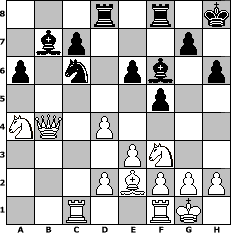 Partie-Notation im PGN-Format [Event "Finale"] [Site "www.mySchach.de"] [Date "2014.07.12"] [Round "1"] [White "espero"] [Black "Grubengeist"] [ECO "A85"] [WhitemyELO "1711"] [BlackmyELO "1966"] [Result "1-0"] [TimeControl "10/2592000"] [WhiteDays "54"] [BlackDays "60"] [MySchachNr "95124"] 1. d4 f5 2. c4 Nf6 3. Nc3 e6 4. Bg5 Be7 5. Nf3 O-O 6. e3 Nc6 7. Bd3 d5 8. O-O h6 9. Bxf6 Bxf6 10. a3 a6 11. b4 dxc4 12. Bxc4 Kh8 13. Qb3 Qe7 14. Rad1 b5 15. Be2 Bb7 16. Rc1 Rad8 17. a4 bxa4 18. Nxa4 Qxb4 19. Qxb4 1-0 Stellungs-Notation im FEN-Format 3r1r1k/1bp3p1/p1n1pb1p/5p2/NQ1P4/4PN2/3PBPPP/2R2RK1 - - - 0 19 Geschlagene Figuren Weiss: Geschlagene Figuren Schwarz: Klicken Sie auf eine geschlagene Figur um den gewünschten Zug darzustellen!