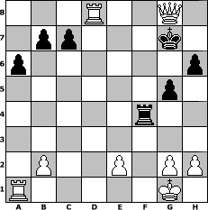 Partie-Notation im PGN-Format [Event "^^Frohes neues Jahr^^"] [Site "www.mySchach.de"] [Date "2007.12.29"] [Round "1"] [White "BobbyF4"] [Black "bluescreenlover"] [ECO "B00"] [WhitemyELO "1520"] [BlackmyELO "1278"] [Result "1-0"] [TimeControl "10/864000"] [WhiteDays "29"] [BlackDays "24"] [MySchachNr "41074"] 1. e4 Nc6 2. Bc4 Nf6 3. Nc3 a6 4. d4 d6 5. f4 Bg4 6. Nf3 e6 7. O-O d5 8. exd5 exd5 9. Bb3 g6 10. Re1+ Be6 11. Ng5 Qe7 12. Bxd5 Bxd5 13. Rxe7+ Bxe7 14. Nxd5 Nxd5 15. c4 Ndb4 16. a3 O-O 17. axb4 Bxb4 18. Bd2 Rae8 19. d5 Rd8 20. Bxb4 Nxb4 21. Qb3 Nxd5 22. cxd5 h6 23. Ne6 fxe6 24. dxe6 Rxf4 25. e7+ Kg7 26. exd8=Q g5 27. Qbg8# 1-0 Stellungs-Notation im FEN-Format 3R2Q1/1pp3k1/p6p/6p1/5r2/8/1P2P1PP/R5K1 - - - 1 27 Geschlagene Figuren Weiss: Geschlagene Figuren Schwarz: Klicken Sie auf eine geschlagene Figur um den gewünschten Zug darzustellen!