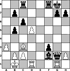 Partie-Notation im PGN-Format [Event "?"] [Site "www.mySchach.de"] [Date "2025.11.01"] [Round "?"] [White "Winston"] [Black "zoli"] [ECO "C44"] [WhitemyELO "1539"] [BlackmyELO "2042"] [Result "0-1"] [TimeControl "10/2592000"] [WhiteDays "90"] [BlackDays "75"] [MySchachNr "133890"] 1. e4 e5 2. Nf3 Nc6 3. a3 Nf6 4. Nc3 d5 5. Bb5 Nxe4 6. Nxe4 dxe4 7. Nxe5 Qg5 8. d4 Qxg2 9. Rf1 Bd6 10. Nxc6 a6 11. Na7+ axb5 12. Nxc8 Rxc8 13. Qe2 O-O 14. Be3 f5 15. O-O-O f4 16. Bd2 e3 17. Bc3 c6 18. d5 f3 19. Qxe3 Bf4 20. Rg1 Bxe3+ 21. Kb1 Bxf2 0-1 Stellungs-Notation im FEN-Format 2r2rk1/1p4pp/2p5/1p1P4/8/P1B2p2/1PP2bqP/1K1R2R1 - - - 0 22 Geschlagene Figuren Weiss: Geschlagene Figuren Schwarz: Klicken Sie auf eine geschlagene Figur um den gewünschten Zug darzustellen!