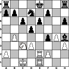Partie-Notation im PGN-Format [Event "Die Wikinger XXI. - Qualifikation"] [Site "www.mySchach.de"] [Date "2025.08.08"] [Round "1"] [White "Hobbykegler"] [Black "Master1"] [ECO "B10"] [WhitemyELO "1018"] [BlackmyELO "1376"] [Result "0-1"] [TimeControl "10/2592000"] [WhiteDays "30"] [BlackDays "30"] [MySchachNr "133567"] 1. e4 c6 2. Nf3 d5 3. e5 Bf5 4. h3 e6 5. g4 Be4 6. d3 Bxf3 7. Qxf3 Bc5 8. Bd2 h6 9. Nc3 Ne7 10. O-O-O Ng6 11. d4 Bb6 12. Bd3 Bxd4 13. b4 Nxe5 14. Qf4 Nxd3+ 15. cxd3 Qf6 16. Qxf6 Bxf6 17. Rhe1 Bh4 18. Re2 Nd7 19. Bf4 g5 20. Rde1 gxf4 0-1 Stellungs-Notation im FEN-Format r3k2r/pp1n1p2/2p1p2p/3p4/1P3pPb/2NP3P/P3RP2/2K1R3 - kq - 0 21 Geschlagene Figuren Weiss: Geschlagene Figuren Schwarz: Klicken Sie auf eine geschlagene Figur um den gewünschten Zug darzustellen!