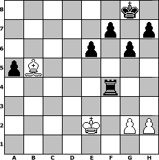 Partie-Notation im PGN-Format [Event "Der sizillianische Drachen"] [Site "www.mySchach.de"] [Date "2004.06.23"] [Round "2"] [White "Sanji"] [Black "kalle"] [ECO "B70"] [WhitemyELO "1109"] [BlackmyELO "1660"] [Result "0-1"] [TimeControl "10/3456000"] [WhiteDays "135"] [BlackDays "153"] [MySchachNr "5358"] 1. e4 c5 2. Nf3 d6 3. d4 cxd4 4. Nxd4 Nf6 5. Nc3 g6 6. Be2 Bg7 7. Be3 Nc6 8. Nb3 O-O 9. Qd3 a6 10. O-O Ne5 11. Qd2 b5 12. a3 Bb7 13. f4 Nc4 14. Qc1 Nxe4 15. Nxe4 Bxb2 16. Qb1 Nxe3 17. Qxb2 Bxe4 18. Qd4 Nxc2 19. Qxe4 Nxa1 20. Nxa1 Rc8 21. Qb7 Qa5 22. Bg4 Rc7 23. Qf3 Rc3 24. Qf2 Rxa3 25. Nc2 Ra2 26. Rc1 b4 27. Qh4 Qc5+ 28. Qf2 b3 29. Qxc5 dxc5 30. Bd1 bxc2 31. Bxc2 c4 32. Be4 Rc8 33. Bd5 e6 34. Rxc4 Rxc4 35. Bxc4 Ra1+ 36. Kf2 a5 37. Ke2 Ra4 38. Bb5 Rxf4 0-1 Stellungs-Notation im FEN-Format 6k1/5p1p/4p1p1/pB6/5r2/8/4K1PP/8 - - - 0 39 Geschlagene Figuren Weiss: Geschlagene Figuren Schwarz: Klicken Sie auf eine geschlagene Figur um den gewünschten Zug darzustellen!