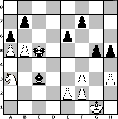 Partie-Notation im PGN-Format [Event "April April"] [Site "www.mySchach.de"] [Date "2014.04.03"] [Round "1"] [White "alibengali"] [Black "espero"] [ECO "C02"] [WhitemyELO "1666"] [BlackmyELO "1601"] [Result "0-1"] [TimeControl "10/2592000"] [WhiteDays "115"] [BlackDays "118"] [MySchachNr "93844"] 1. e4 e6 2. d4 d5 3. e5 c5 4. dxc5 Bxc5 5. Qg4 Ne7 6. b4 h5 7. Qh4 Bb6 8. Bg5 Nbc6 9. Bb5 Bd7 10. Bxc6 Bxc6 11. Nf3 Qd7 12. Bxe7 Qxe7 13. Qxe7+ Kxe7 14. a4 a6 15. O-O d4 16. Nbd2 Rhd8 17. a5 Ba7 18. Ra3 Bb5 19. Rc1 Rac8 20. c4 dxc3 21. Raxc3 Rxc3 22. Rxc3 Bc6 23. Rc1 g5 24. Nc4 Bxf3 25. gxf3 Rc8 26. Rc2 Bd4 27. Ne3 Rxc2 28. Nxc2 Bxe5 29. h3 Kd6 30. Na3 Bc3 31. b5 Kc5 0-1 Stellungs-Notation im FEN-Format 8/1p3p2/p3p3/PPk3pp/8/N1b2P1P/4PP2/6K1 - - - 1 32 Geschlagene Figuren Weiss: Geschlagene Figuren Schwarz: Klicken Sie auf eine geschlagene Figur um den gewünschten Zug darzustellen!