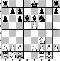 Partie-Notation im PGN-Format [Event "1. Weltmeisterschaft @ myschach.de"] [Site "www.mySchach.de"] [Date "2006.09.15"] [Round "1"] [White "HPB2005"] [Black "MartinSilies"] [ECO "C68"] [WhitemyELO "1988"] [BlackmyELO "1547"] [Result "1-0"] [TimeControl "10/2592000"] [WhiteDays "45"] [BlackDays "36"] [MySchachNr "28469"] 1. e4 e5 2. Nf3 Nc6 3. Bb5 a6 4. Bxc6 dxc6 5. O-O Bd6 6. d4 exd4 7. Qxd4 Be6 8. Qxg7 Qf6 9. Qxf6 Nxf6 10. e5 1-0 Stellungs-Notation im FEN-Format r3k2r/1pp2p1p/p1pbbn2/4P3/8/5N2/PPP1PPPP/RNB2RK1 - kq - 0 10 Geschlagene Figuren Weiss: ![]() ![]() ![]() ![]() ![]() ![]() ![]() ![]() ![]() ![]() ![]() ![]() ![]() ![]() ![]() Geschlagene Figuren Schwarz: ![]() ![]() ![]() ![]() ![]() ![]() ![]() ![]() ![]() ![]() ![]() ![]() ![]() ![]() ![]() Klicken Sie auf eine geschlagene Figur um den gewünschten Zug darzustellen!