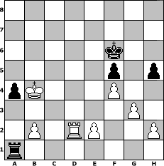 Partie-Notation im PGN-Format [Event "D.A. - Schnell 1"] [Site "www.mySchach.de"] [Date "2008.06.09"] [Round "1"] [White "brucybabe"] [Black "Knight"] [ECO "C78"] [WhitemyELO "1629"] [BlackmyELO "1230"] [Result "1-0"] [TimeControl "10/864000"] [WhiteDays "10"] [BlackDays "10"] [MySchachNr "45492"] 1. e4 e5 2. Nf3 Nc6 3. Bb5 a6 4. Ba4 Nf6 5. O-O b5 6. Bb3 Bc5 7. Nxe5 Nxe5 8. d4 Bxd4 9. Qxd4 d6 10. Bg5 Bb7 11. Nc3 O-O 12. f4 Nc6 13. Bxf6 Qxf6 14. Qxf6 gxf6 15. Nd5 Kg7 16. Nxc7 Rac8 17. Nd5 Nd4 18. c3 Nxb3 19. axb3 Rfe8 20. Rae1 f5 21. c4 bxc4 22. bxc4 Rxc4 23. Ne3 Rcxe4 24. Nxf5+ Kg6 25. Rxe4 Rxe4 26. Nxd6 Re7 27. Nxb7 Rxb7 28. Rf2 f5 29. Kf1 a5 30. Ke1 a4 31. Kd1 Rb4 32. Kc1 h5 33. g3 Kf6 34. Rd2 Re4 35. Kb1 Re1+ 36. Ka2 Rh1 37. Ka3 Ra1+ 38. Kb4 1-0 Stellungs-Notation im FEN-Format 8/8/5k2/5p1p/pK3P2/6P1/1P1RP2P/r7 - - - 10 38 Geschlagene Figuren Weiss: Geschlagene Figuren Schwarz: Klicken Sie auf eine geschlagene Figur um den gewünschten Zug darzustellen!