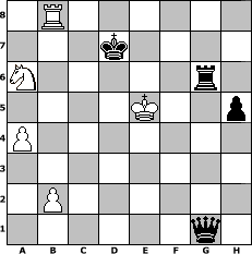 Partie eroeffnet am 28.02.2006, 00:01 Uhr und beendet am 04.03.2006, 12:25 Uhr Spieler weiss: Andylein1989 Spieler schwarz: Master1 Master1 hat die Partie gewonnen! | |