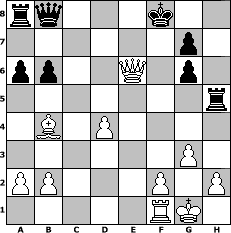 Partie-Notation im PGN-Format [Event "Februar 2018"] [Site "www.mySchach.de"] [Date "2018.02.03"] [Round "1"] [White "Naunhofer"] [Black "wolni55"] [ECO "D02"] [WhitemyELO "1612"] [BlackmyELO "1464"] [Result "1-0"] [TimeControl "10/1728000"] [WhiteDays "60"] [BlackDays "52"] [MySchachNr "111243"] 1. d4 d5 2. Nf3 Bf5 3. c4 e6 4. Nc3 Bb4 5. e3 Nf6 6. Bd2 Bxc3 7. Bxc3 a6 8. Nh4 Bg6 9. Nxg6 hxg6 10. Qb3 b6 11. Be2 Nbd7 12. O-O Qb8 13. Bf3 c6 14. g3 Nh5 15. e4 Nf4 16. e5 Nh5 17. Bd2 f6 18. exf6 Nhxf6 19. Rae1 Nf8 20. cxd5 cxd5 21. Bxd5 Nxd5 22. Qxd5 Rh5 23. Rxe6+ Nxe6 24. Qxe6+ Kf8 25. Bb4+ 1-0 Stellungs-Notation im FEN-Format rq3k2/6p1/pp2Q1p1/7r/1B1P4/6P1/PP3P1P/5RK1 - - - 2 25 Geschlagene Figuren Weiss: Geschlagene Figuren Schwarz: Klicken Sie auf eine geschlagene Figur um den gewünschten Zug darzustellen!
