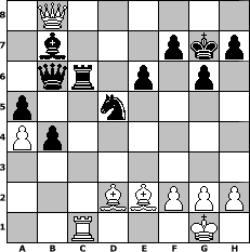 Partie-Notation im PGN-Format [Event "Mai-Schach Turnier"] [Site "www.mySchach.de"] [Date "2011.05.01"] [Round "1"] [White "HPB2005"] [Black "deepsabel"] [ECO "D35"] [WhitemyELO "1970"] [BlackmyELO "1956"] [Result "0-1"] [TimeControl "10/2592000"] [WhiteDays "53"] [BlackDays "72"] [MySchachNr "73682"] 1. d4 d5 2. c4 e6 3. Nc3 Nf6 4. a3 c6 5. Nf3 dxc4 6. e4 b5 7. b3 cxb3 8. Qxb3 a6 9. e5 Nd5 10. Be2 Be7 11. O-O O-O 12. Ne4 Nd7 13. Bd2 c5 14. Nxc5 Nxc5 15. dxc5 Bxc5 16. Ng5 Be7 17. Nf3 Bb7 18. Qd3 Rc8 19. Rfc1 Qb6 20. a4 b4 21. Rab1 a5 22. Ng5 g6 23. Ne4 Rxc1+ 24. Rxc1 Rd8 25. Nd6 Bxd6 26. exd6 Rxd6 27. Qg3 Rc6 28. Qb8+ Kg7 0-1 Stellungs-Notation im FEN-Format 1Q6/1b3pkp/1qr1p1p1/p2n4/Pp6/8/3BBPPP/2R3K1 - - - 4 29 Geschlagene Figuren Weiss: Geschlagene Figuren Schwarz: Klicken Sie auf eine geschlagene Figur um den gewünschten Zug darzustellen!