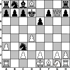 Partie-Notation im PGN-Format [Event "WRG 2"] [Site "www.mySchach.de"] [Date "2015.01.29"] [Round "1"] [White "LouisaN"] [Black "Haneken"] [ECO "C15"] [WhitemyELO "1505"] [BlackmyELO "1004"] [Result "1-0"] [TimeControl "10/2592000"] [WhiteDays "59"] [BlackDays "59"] [MySchachNr "97901"] 1. e4 e6 2. d4 d5 3. Nc3 Bb4 4. a3 Bxc3 5. bxc3 dxe4 6. f3 Nf6 7. fxe4 Nxe4 8. Qg4 Nxc3 9. Qxg7 Ke7 10. Bg5+ Kd7 11. Bxd8 1-0 Stellungs-Notation im FEN-Format rnbB3r/pppk1pQp/4p3/8/3P4/P1n5/2P1P1PP/R3KBNR - KQ - 0 11 Geschlagene Figuren Weiss: Geschlagene Figuren Schwarz: Klicken Sie auf eine geschlagene Figur um den gewünschten Zug darzustellen!