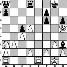 Partie-Notation im PGN-Format [Event "Nach dem Sommerurlaub ..."] [Site "www.mySchach.de"] [Date "2015.09.13"] [Round "2"] [White "Master1"] [Black "reisinger"] [ECO "D02"] [WhitemyELO "1272"] [BlackmyELO "1486"] [Result "1-0"] [TimeControl "10/2592000"] [WhiteDays "78"] [BlackDays "88"] [MySchachNr "100433"] 1. d4 d5 2. Nf3 Bf5 3. g3 h6 4. Bg2 Nc6 5. O-O e6 6. b3 Nf6 7. Bb2 Bd6 8. Re1 e5 9. dxe5 Bxe5 10. Nxe5 Nb4 11. Na3 c5 12. c3 Nc6 13. Nxc6 bxc6 14. c4 d4 15. Bxc6+ Bd7 16. Bxa8 Qxa8 17. e3 O-O 18. exd4 Bh3 19. d5 Rd8 20. Bxf6 gxf6 21. Qh5 1-0 Stellungs-Notation im FEN-Format q2r2k1/p4p2/5p1p/2pP3Q/2P5/NP4Pb/P2P1P1P/R3R1K1 - - - 1 21 Geschlagene Figuren Weiss: Geschlagene Figuren Schwarz: Klicken Sie auf eine geschlagene Figur um den gewünschten Zug darzustellen!