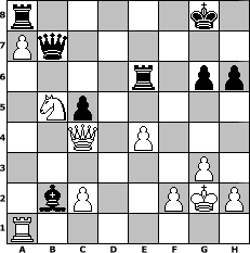 Partie-Notation im PGN-Format [Event "LCC Sommer Mannschaftsturnier 2016"] [Site "www.mySchach.de"] [Date "2016.07.29"] [Round "1"] [Board "3"] [White "luisamey"] [Black "Joschi"] [ECO "A15"] [WhitemyELO "1483"] [BlackmyELO "1537"] [Result "0-1"] [TimeControl "10/2592000"] [WhiteDays "00"] [BlackDays "30"] [MySchachNr "104362"] 1. c4 Nf6 2. Nf3 g6 3. d4 c5 4. d5 b5 5. cxb5 a6 6. bxa6 Bxa6 7. Nc3 d6 8. e4 Bxf1 9. Kxf1 Nbd7 10. g3 Bg7 11. Kg2 O-O 12. Qe2 Qb6 13. a4 Rfb8 14. Nb5 Ng4 15. Bg5 Re8 16. Nd2 Ngf6 17. Nc4 Qd8 18. a5 h6 19. Bxf6 Bxf6 20. a6 Nb6 21. Ra2 Nxc4 22. Qxc4 Qb6 23. a7 e6 24. dxe6 fxe6 25. Rha1 Re7 26. Ra6 Qb7 27. Rxd6 Bxb2 28. Rxe6 Rxe6 0-1 Stellungs-Notation im FEN-Format r5k1/Pq6/4r1pp/1Np5/2Q1P3/6P1/1bP2PKP/R7 - - - 0 29 Geschlagene Figuren Weiss: Geschlagene Figuren Schwarz: Klicken Sie auf eine geschlagene Figur um den gewünschten Zug darzustellen!